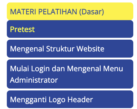 Menu untuk mengakses semua materi |